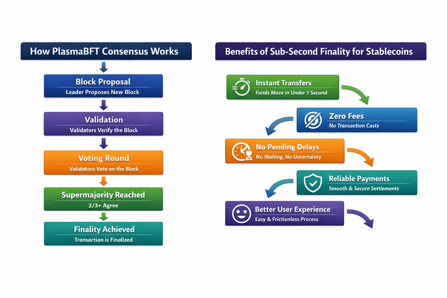 Podstawowe filary techniczne w prostych słowach. Architektura Plasma opiera się na kilku filarach, które warto wyjaśnić bez zwykłego żargonu. Po pierwsze, ostateczność ma znaczenie. PlasmaBFT to komponent protokołu, który projekt wyróżnia, aby zapewnić deterministyczną i bardzo szybką ostateczność dla rozliczeń. Po drugie, mechanika natywna stablecoinów ma znaczenie. Łańcuch jest dostosowany, aby przesuwanie dolarów równoważnych było przewidywalne i tanie. Po trzecie, ergonomika dewelopera ma znaczenie. Plasma świadomie przyjmuje zgodność z EVM, jednocześnie nakładając specjalizowane funkcje rozliczeniowe, których potrzebują instytucje. Wreszcie, założenia dotyczące bezpieczeństwa mają znaczenie. Plasma negocjuje model bezpieczeństwa, który ma być praktyczny dla oporu przed cenzurą, jednocześnie uznając, że operatorzy finansowi cenią przewidywalne zachowanie ponad absolutną decentralizację.