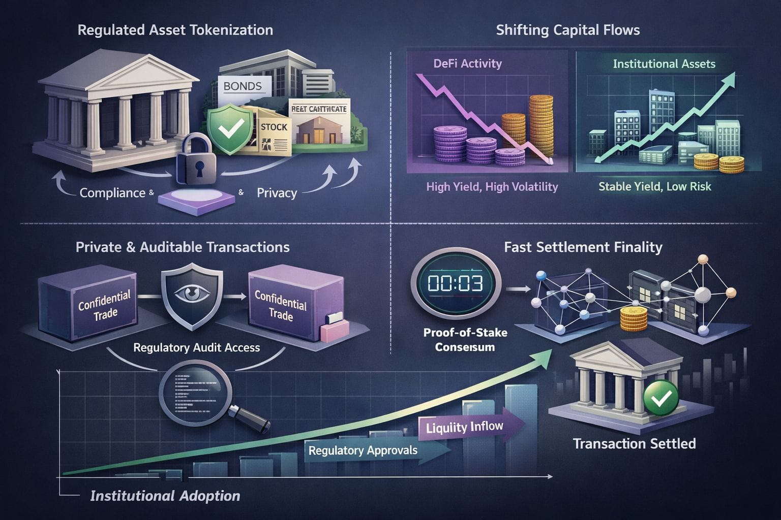 There is also a subtle capital flow dynamic forming that favors chains like Dusk. As yield compresses in retail DeFi, larger players are rotating toward lower-volatility, compliance-friendly on-chain instruments. This is visible in on-chain data as longer holding periods, lower transaction frequency, and higher average position sizes in RWA-adjacent protocols. Dusk is structurally aligned with that shift. It is not optimized for memecoin velocity or NFT churn. It is optimized for slow money that expects contracts to still work five years from now.