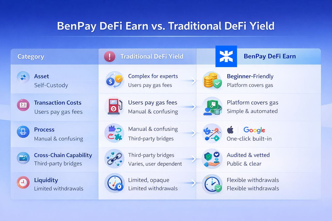 BenPay DeFi Earn vs. Traditional DeFi Yield