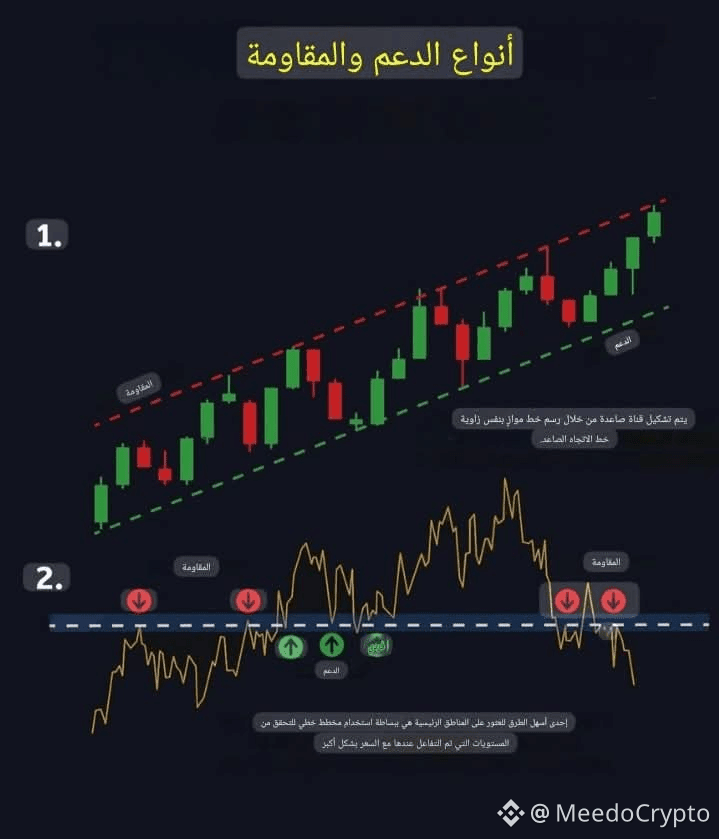 •الفكرة: طالما بقي السعر داخل هذه القناة، فإنه من المتوقع أن يستمر في الارتفاع، حيث يرتد صعودًا من خط الدعم وهبوطًا من خط المقاومة.
