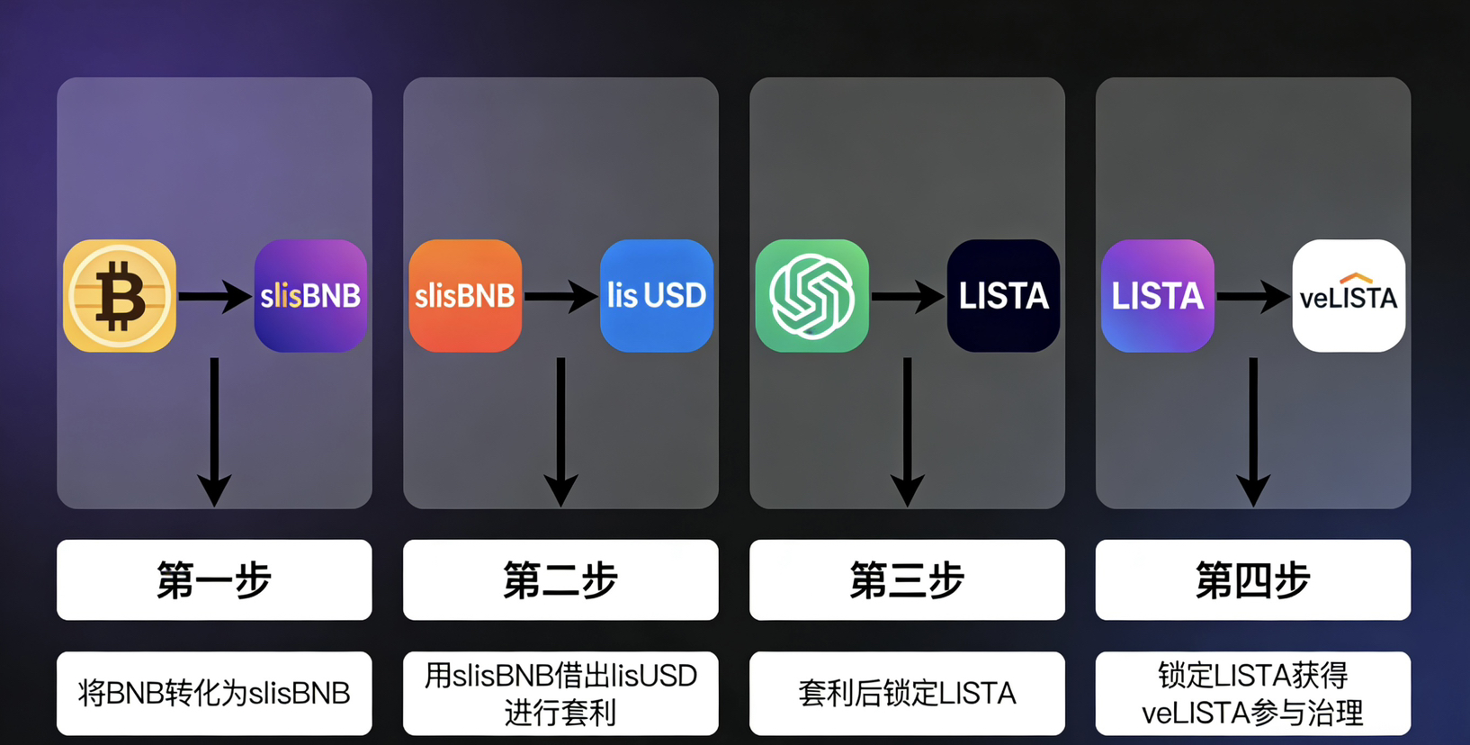 Widzisz, cztery tokeny pełnią swoje role i są ze sobą powiązane: slisBNB zapewnia podstawy dochodu i płynności, lisUSD jest medium obiegu wartości, LISTA i veLISTA zapewniają ewolucję systemu i sprawiedliwy podział korzyści.
