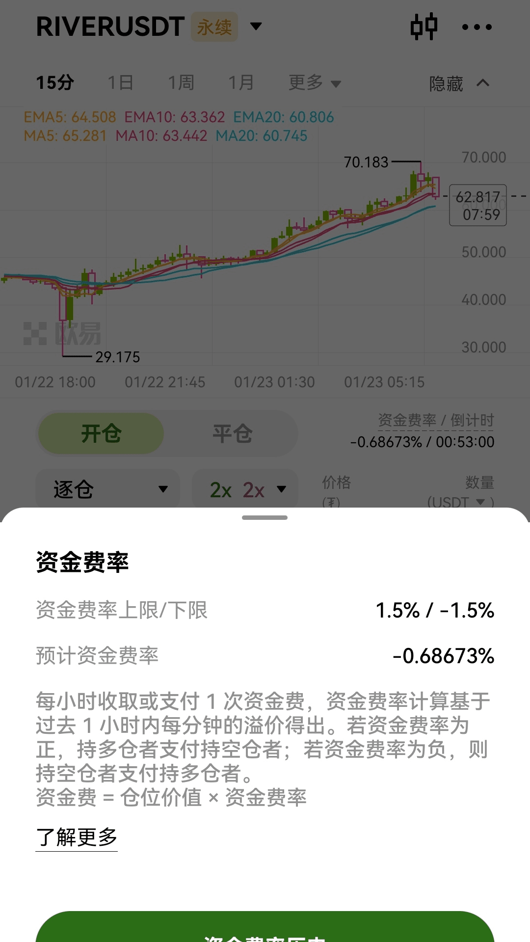 -okx吃的有点急了,资金费-1.5/1小时,币价70