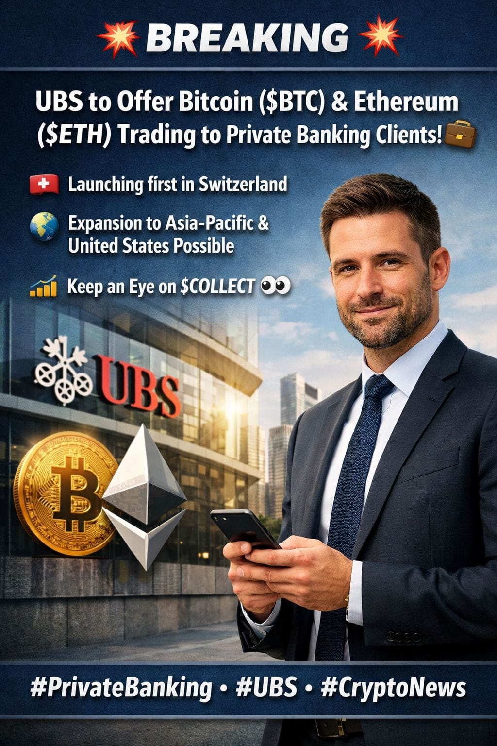 UBS is preparing to offer Bitcoin ($BTC) and Ethereum ($ETH) trading to its private banking clients 💼🚀