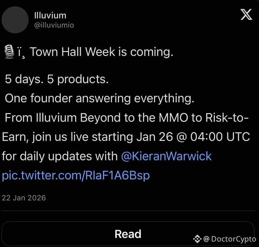 lluvium is set to host a community call on January 26 at 4:00 UTC, featuring live commentary from the project founder along with product-level updates across Illuvium Beyond, the MMO, and the evolving Risk-to-Earn ecosystem.