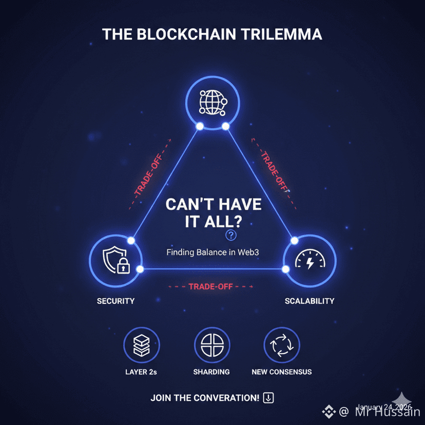 If you want speed (Scalability), you usually have to cut down the number of people checking the math, which hurts Decentralization. If you want maximum Security and decentralization (like Bitcoin), every single node has to agree on every transaction—which is great for trust, but slow for buying a cup of coffee.