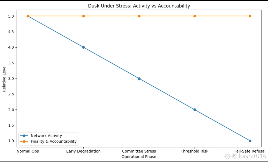 For now, the data suggests patience rather than failure. Dusk looks less like a chain chasing activity, and more like infrastructure waiting for the moment when privacy stops being ideological and starts being procedural. When that shift happens, intentional privacy—not blanket secrecy—is what regulated markets will reach for first.