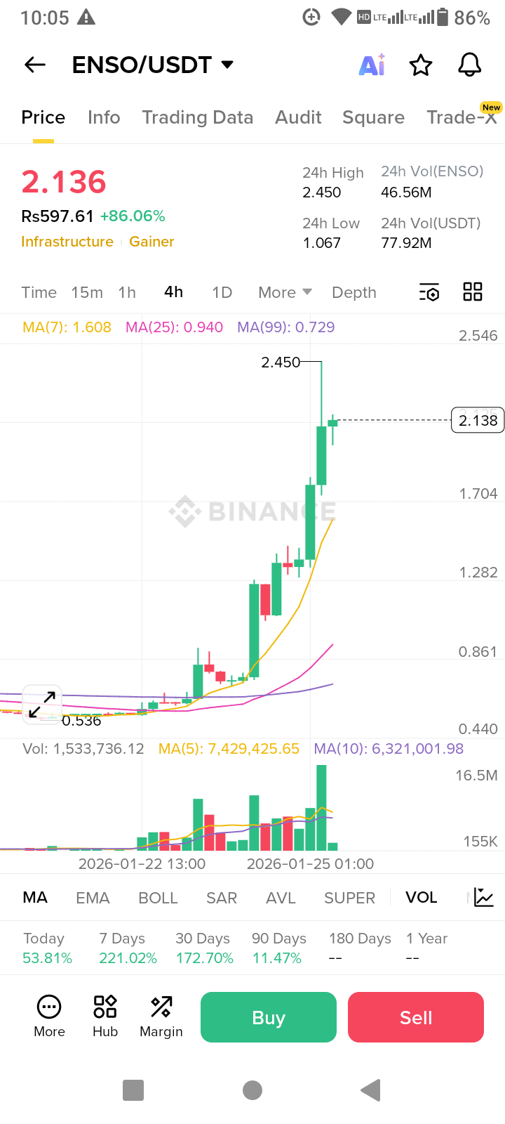 * Lista Upbit: ENSO zostało ostatnio dodane do Upbit (największej giełdy w Korei Południowej). To otworzyło wrota dla wolumenu "Kimchi Premium", który często napędza ceny znacznie wyżej niż na giełdach zachodnich.