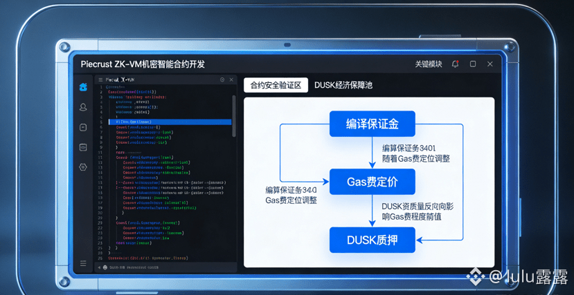 Piecrust ZK-VM作为Dusk实现机密智能合约的核心,其运行和开发同样以DUSK为原生通证,我用Rust在这个虚拟机上部署过多次机密智能合约,深刻体会到DUSK在这里不仅是支付工具,更是合约安全、开发质量的经济保障。和以太坊的EVM不同,在Piecrust ZK-VM里部署合约,首先需要质押一定量的DUSK作为编译保证金,因为该虚拟机上的合约都是机密智能合约,其执行过程会隐藏交易金额、计算过程等核心信息,一旦编译出的合约存在漏洞导致隐私泄露,质押的DUSK会被扣除,用于补偿受影响的用户和修复漏洞,这就让开发者在开发过程中必须更注重代码的专业性和安全性,从根源上降低合约漏洞的概率。而合约运行时的Gas费计算,也完全贴合零知识证明的技术特性,并非按交易次数计算,而是按合约的密码学电路门数量和证明生成难度来定,电路越复杂、证明生成难度越高,所需支付的DUSK就越多,这一定价机制让Gas费的收取更具合理性,也让开发者在设计合约时会注重电路的优化,提升合约的运行效率。甚至Piecrust ZK-VM的版本升级,也需要节点质押DUSK参与链上投票,参与投票的节点必须是合约开发和验证的活跃节点,投票权重结合了节点的DUSK质押时长、合约开发数量和验证准确率,这就让虚拟机的升级始终贴合开发者的实际需求,不会出现脱离实际应用的技术升级,而想要成为该虚拟机的开发节点,也需要持有并质押一定量的DUSK,持有量越多,能开发的合约复杂度越高,这并非是设置门槛,而是因为高阶机密智能合约的开发对节点的密码学和开发能力要求更高,DUSK的持有量成为了筛选专业开发者的有效手段,保障了整个生态的技术质量。
