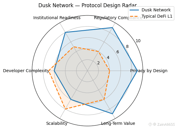 Compare that to most DeFi chains. Ethereum is flexible but public by default. Newer L2s scale fast but don’t really solve privacy at the protocol level. Dusk is different because privacy isn’t an add-on. It’s baked into how smart contracts work. Of course, this path isn’t risk-free. Institutional adoption moves slowly. Regulations change. And let’s be honest privacy tech is complex, which raises the bar for developers. If tooling doesn’t stay friendly, ecosystems stall. That’s a real challenge Dusk still has to manage.