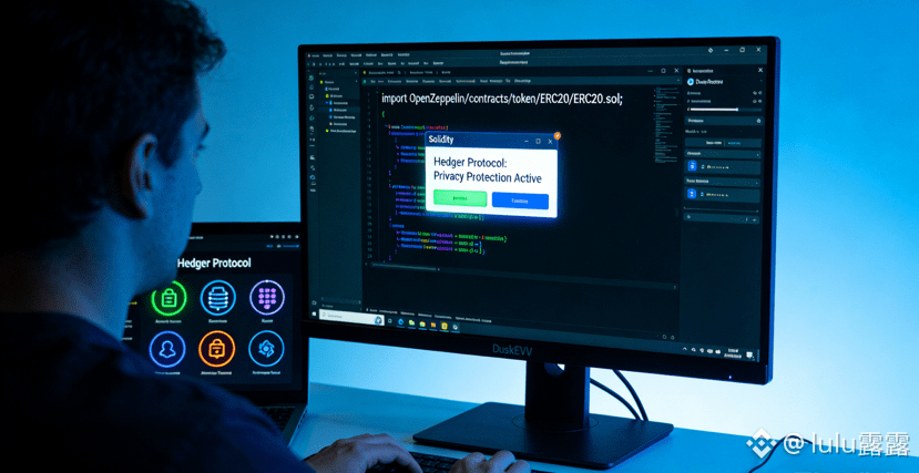最让我意外的是DuskEVM的设计,它彻底打破了“隐私公链与以太坊生态割裂”的魔咒。作为一个习惯了Solidity开发的开发者,我原本以为迁移到隐私公链会面临无尽的适配难题——要么重构合约逻辑,要么忍受隐私功能的阉割。但在DuskEVM上部署合约时,我几乎没遇到任何阻碍:直接导入熟悉的OpenZeppelin库,编译参数无需调整,连测试脚本都能无缝运行,迁移成本低到超出预期。真正的惊喜在后续的隐私测试中,我部署了一个简单的借贷合约,原本以为需要额外调用隐私模块才能隐藏交易数据,结果发现合约执行时,借款金额、抵押比例这些核心信息默认就是机密状态,链上完全看不到明文数据。后来翻查技术文档才知道,这背后是Hedger协议的功劳,它把同态加密和零知识证明嵌进了EVM执行层,不需要开发者写一行额外代码,就能让普通Solidity合约具备隐私保护能力。更绝的是合规设计,我在合约中加入了投资者资质验证功能,通过调用Citadel框架的接口,用户只需生成一个ZKP证明自己符合合格投资者要求,不用暴露任何个人信息,合约就能自动通过验证,这完全契合MiCA和MiFID II的监管要求,这种“开发无感知、合规原生化”的设计,在其他隐私公链里从未见过。