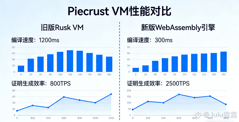 如果说DuskEVM解决了生态兼容的痛点,那Piecrust VM的升级则把零知识计算的性能推到了新高度。Dusk团队用WebAssembly引擎取代了之前的Rusk VM,这个看似简单的替换,背后是对隐私计算效率的极致追求。我曾对比测试过两款功能相同的机密合约,分别部署在旧版Rusk VM和新版Piecrust VM上,结果差异惊人:Piecrust VM的合约编译时间缩短了60%,证明生成速度提升了10倍,就连链上存储占用都减少了75%。拆解源码后发现,Piecrust VM把哈希计算、签名验证这些繁重的密码学操作,从VM字节码处理转移到了主机函数层,通过Rust语言的底层优化,大幅降低了冗余计算。更关键的是它对ZKP递归技术的原生支持,我测试过一次批量交易验证:同时发起10笔隐私转账,传统ZKP方案需要生成10个独立证明,验证时间超过3秒,而Piecrust VM通过递归技术,将10笔交易的证明合并成一个,验证时间缩短到0.5秒以内,链上存储压力也随之大幅降低。这种“单证明验证多区块”的能力,是Dusk联合巴塞罗那大学共同研发的核心成果,再加上自主迭代的PLONKup算法,证明生成时间又额外缩短了40%,验证效率提升3倍,这让高频金融场景的隐私交易成为可能——比如证券代币的日内高频交易,既能保证每一笔交易的隐私性,又能满足金融系统对结算速度的要求。
