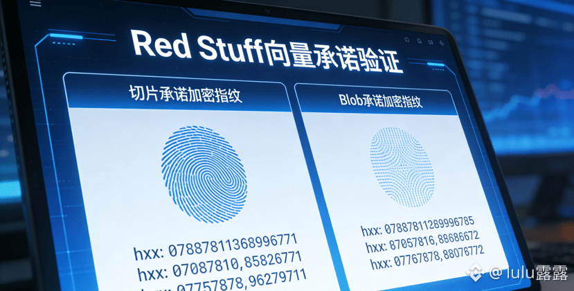 Red Stuff的向量承诺验证机制,是我见过最靠谱的数据防篡改方案,之前总担心去中心化存储中恶意节点返回篡改数据,实测后彻底放心。它的验证逻辑分两层:切片承诺和Blob承诺。每次上传文件,Red Stuff会先将数据编码成主切片和副切片,对每个切片都生成加密向量承诺,相当于给每个数据片段盖了个不可篡改的“指纹”,再将所有切片承诺组合成顶层的Blob承诺,最终通过哈希计算生成Blob ID。我实测上传10GB的视频文件,生成的每个切片承诺都是32字节的加密串,用walrus verify-sliver命令验证时,不用下载整个切片,只需对比承诺就能确认数据是否完整。