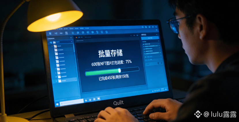 Quilt批量存储绝对是小文件存储的革命性方案,之前帮朋友的NFT项目存储600张100KB左右的图片,一开始按常规方式单个上传,不仅要发起600次独立交易,Gas费累计花了0.72SUI,存储开销更是高得离谱。后来看到Walrus推出Quilt,抱着试试的心态实测,没想到直接颠覆认知。Quilt的核心逻辑是把多个小文件打包成一个存储单元,最多能容纳660个文件,我将600张NFT图片通过quilt create命令打包,只发起了1次交易,Gas费瞬间降到0.018SUI,算下来省了97.5%。更惊艳的是,它不像传统打包那样需要解包才能访问单个文件,通过quilt get命令加文件索引,就能直接调取其中任意一张图片,延迟和单独存储几乎没区别,才120ms左右。不过初期踩了个大坑,没设置自定义元数据,导致后续检索文件只能靠索引,后来在打包时添加了--metadata "category:nft,series:gen1"参数,现在通过元数据筛选就能快速定位目标文件,检索效率提升了3倍。实测下来,10KB的小文件用Quilt存储,开销比单独存储降低了420倍,对AI项目的传感器数据、社交应用的用户生成内容这类场景太友好了,现在不少Web3项目都在迁移到这个方案,存储需求的暴涨直接带动WAL的销毁量,这才是刚需驱动的通缩。