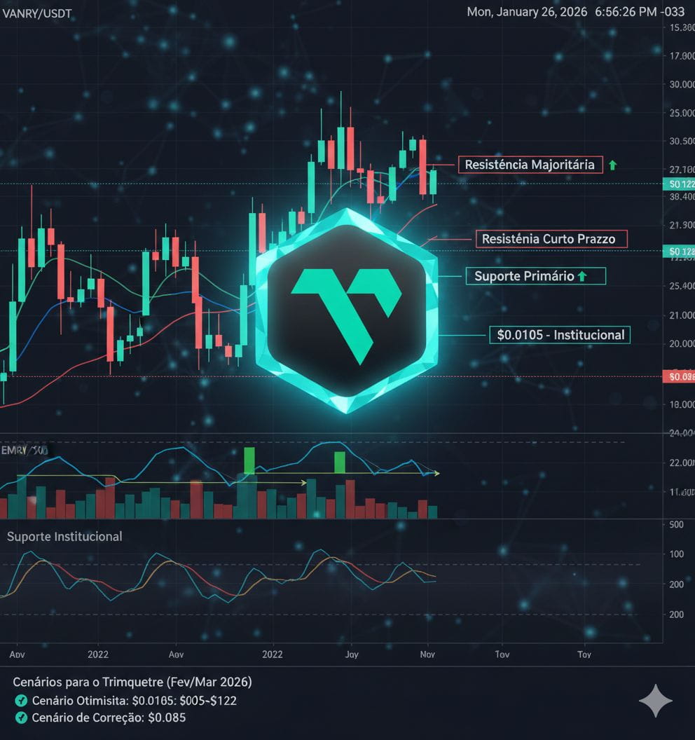 * Cenário Lateral (Consolidação): O preço oscila entre $0,0105 e $0,0122, aguardando novos anúncios de parcerias com provedores de hardware de IA.