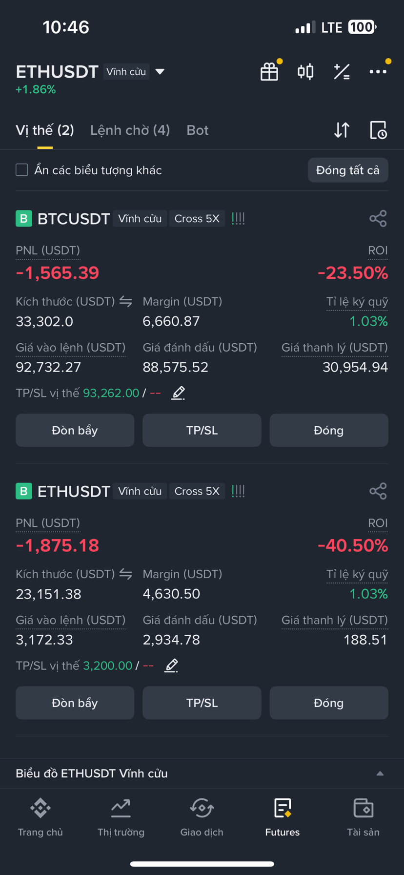 Wszedł w długą pozycję scalp BTC i ETH z dość jasnym celem. W przypadku BTC wystarczy, że zyskuje około 1000 punktów, aby zamknąć pozycję. W przypadku ETH zysk około 40 punktów, aby wyjść z pozycji. Początkowy plan wydawał się w porządku, ale problem leżał w tym, że nie ustawił poziomu stop loss.