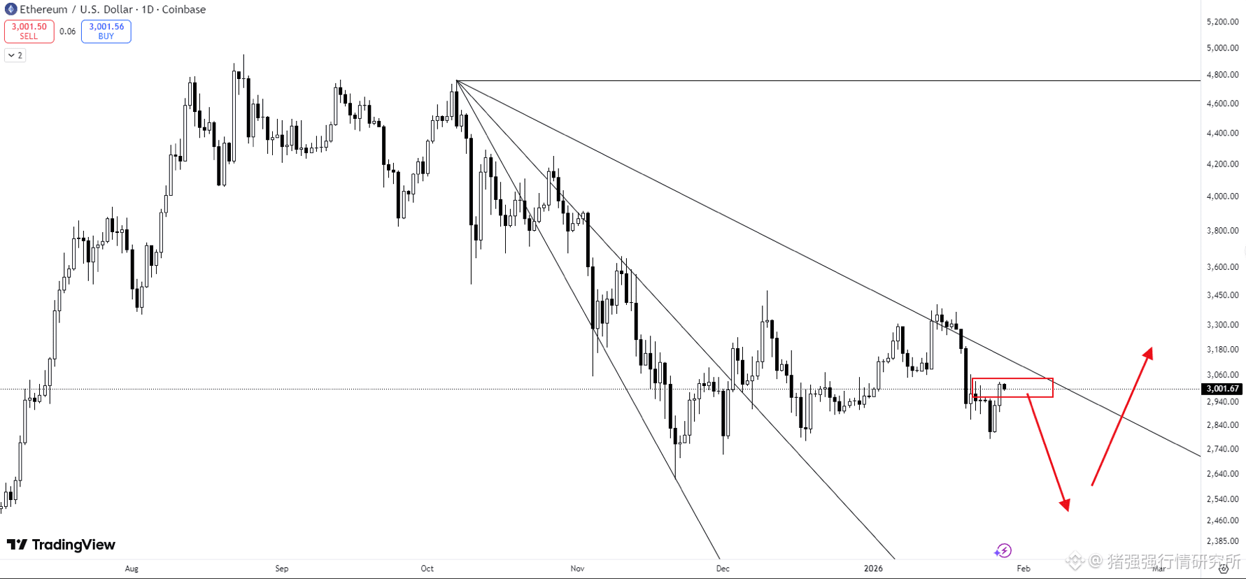 $eth eth目前反复测试1/3速阻线 贴着走 往下依然是大概率。