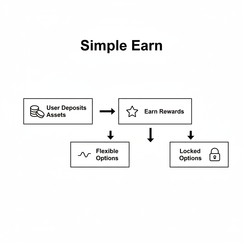 Simple Earn istnieje dla użytkowników, którzy preferują stabilność i łatwość. Depozytując aktywa, użytkownicy mogą zdobywać nagrody bez ciągłego śledzenia wykresów lub zarządzania pozycjami.