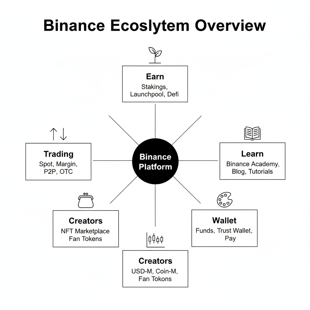 Kiedy ludzie po raz pierwszy słyszą słowo Binance, zazwyczaj myślą o handlu. Kupowanie Bitcoinów, sprzedawanie altcoinów, obserwowanie ruchów wykresów. Ale dla milionów użytkowników dzisiaj, Binance to już nie tylko platforma handlowa. Cicho przekształciła się w coś znacznie większego — ekosystem, w którym ludzie handlują, uczą się, zarabiają, tworzą, a nawet budują długoterminowe cyfrowe nawyki.