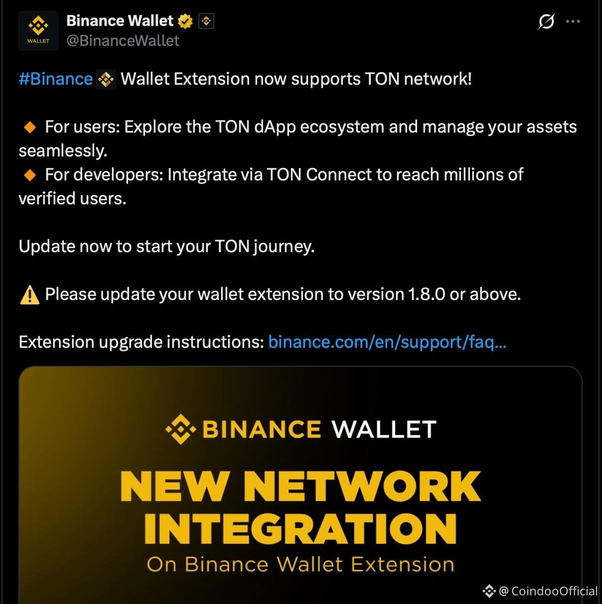 Binance has expanded the reach of its wallet ecosystem by adding support for the TON blockchain, opening the door for millions of users to interact directly with TON-based applications.