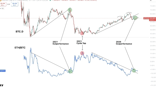 Jeśli chcesz zrozumieć, dokąd zmierza rynek, spójrz na dominację BTC (BTC.D) i ETH/BTC — to wszystko.