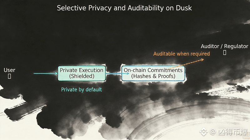 Dusk 是一条隐私优先的 Layer1 公链,但它的隐私并非不可穿透的“黑盒”。交易默认是加密的,参与者、金额、策略对外不可见。然而,在合法且必要的情况下,监管方与审计机构能够通过密码学手段,验证某一行为是否符合既定规则——无需暴露原始数据。