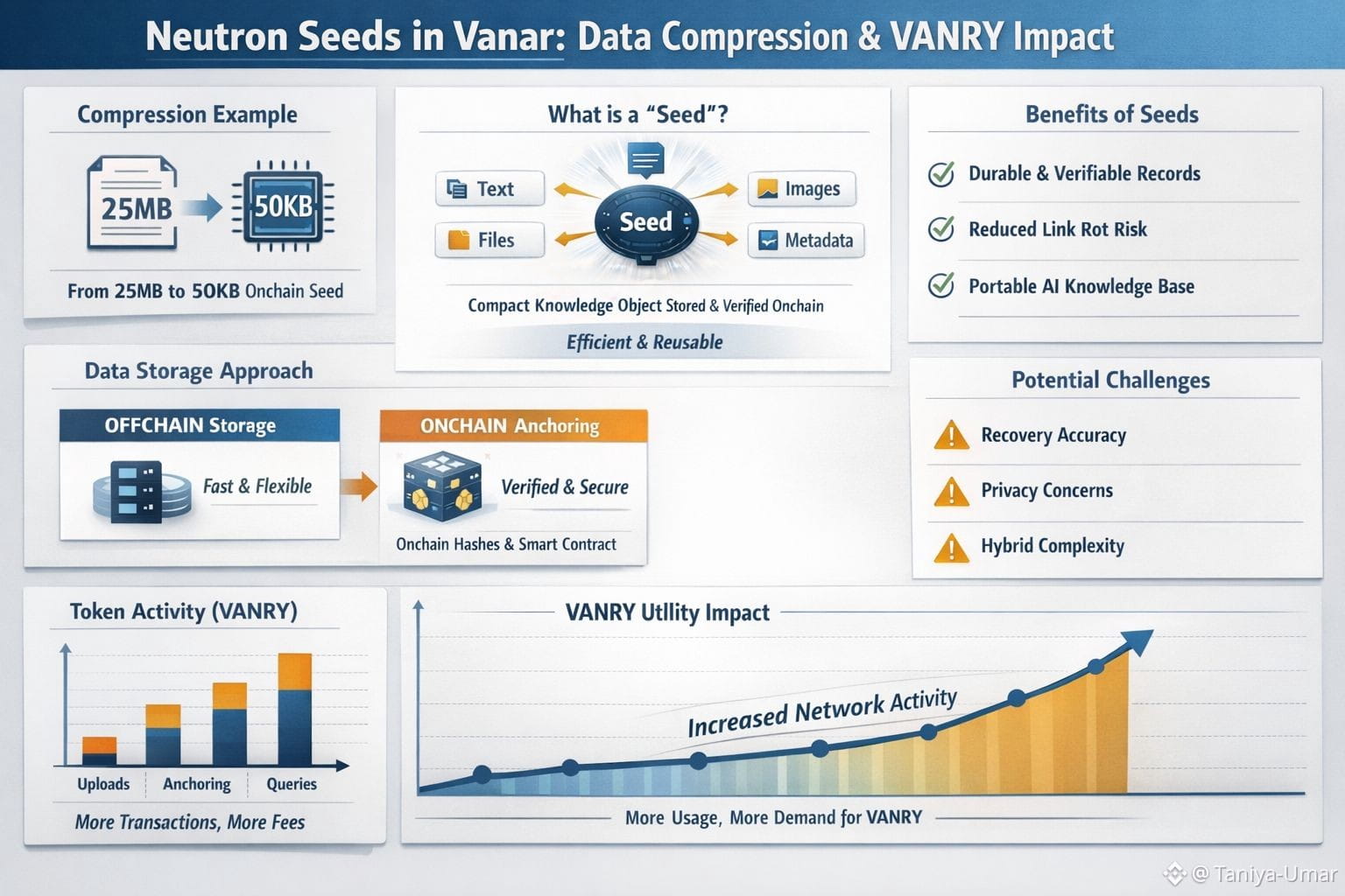 @Vanarchain When people talk about Neutron Seeds on Vanar, they often start with a vivid claim: take something bulky, like a 25-megabyte file, and compress it into something small enough to store and verify on a blockchain. That grabs attention, but the more interesting idea is what the compression is meant to unlock. Vanar describes Neutron as a layer that compresses and restructures data into programmable “Seeds,” with the aim that an app can treat a document less like a dead attachment and more like a unit of usable knowledge.
