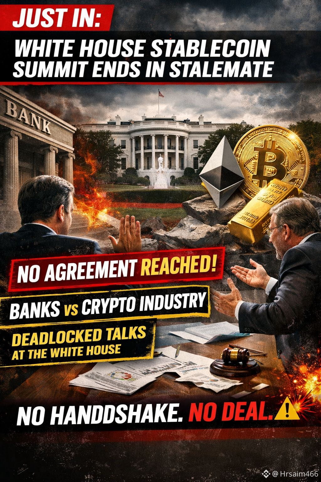 $BTC $ETH Washington’s long-anticipated White House stablecoin summit has ended without agreement, exposing deep fractures between traditional finance and the crypto industry.
