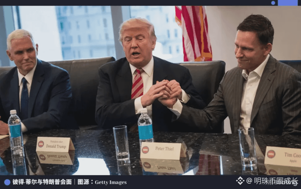 同年,彼得·蒂尔下了一步险棋,在共和党大会上公开力挺特朗普。这场豪赌让他直接杀入了权力过渡的核心圈。一夜之间,他从硅谷投资人,变身为连接科技界与白宫的关键桥梁。