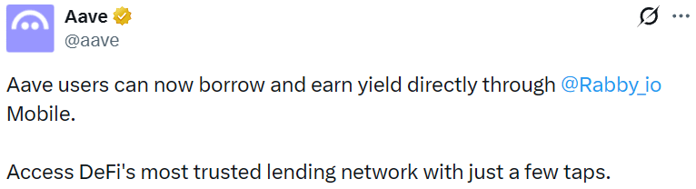 Rabby Mobile zintegrował funkcję pożyczania Aave