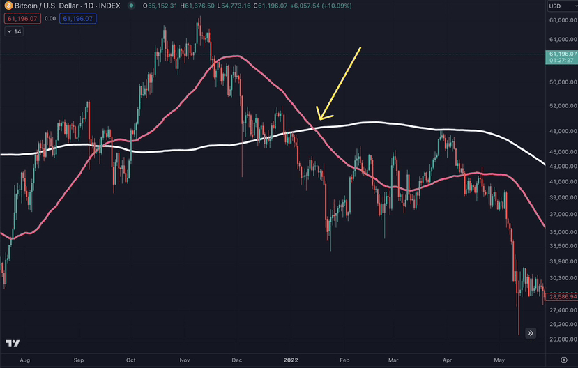 Em 2022,#BTC houve uma pequena recuperação na cruz da morte, mas ela desapareceu depois que a cruz ocorreu.
