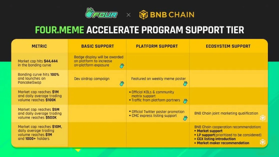 Lançado na inovadora plataforma four.meme, $ZHOA fez uma estreia impressionante, mostrando seu potencial na arena das memecoins. Em uma hora de sua listagem, $ZHOA foi vinculado e atingiu mais de US$ 1,6 milhão em volume de negociação em seu primeiro dia na PancakeSwap. Esse desempenho notável o posiciona como um dos lançamentos mais bem-sucedidos entre os tokens four.meme vinculados, refletindo o forte interesse e entusiasmo da comunidade. A equipe four.meme anunciou incentivos interessantes que dão aos projetos um roteiro para o suporte da BNBchain. A plataforma oferece lançamentos simples de memecoins com 0% de impostos, contratos renunciados e liquidez queimada. É a maneira mais segura para as memecoins serem lançadas na BNBchain e é endossada pela própria cadeia.