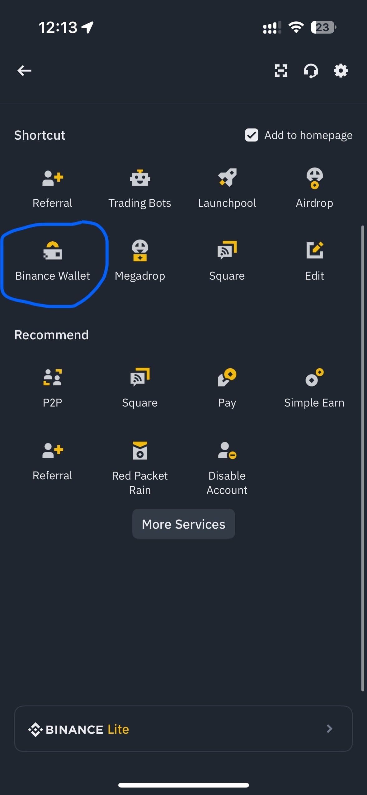 2️⃣ Clique em Binance Web3 Wallet (carteira de autocustódia da Binance) e crie uma carteira se ainda não o fez