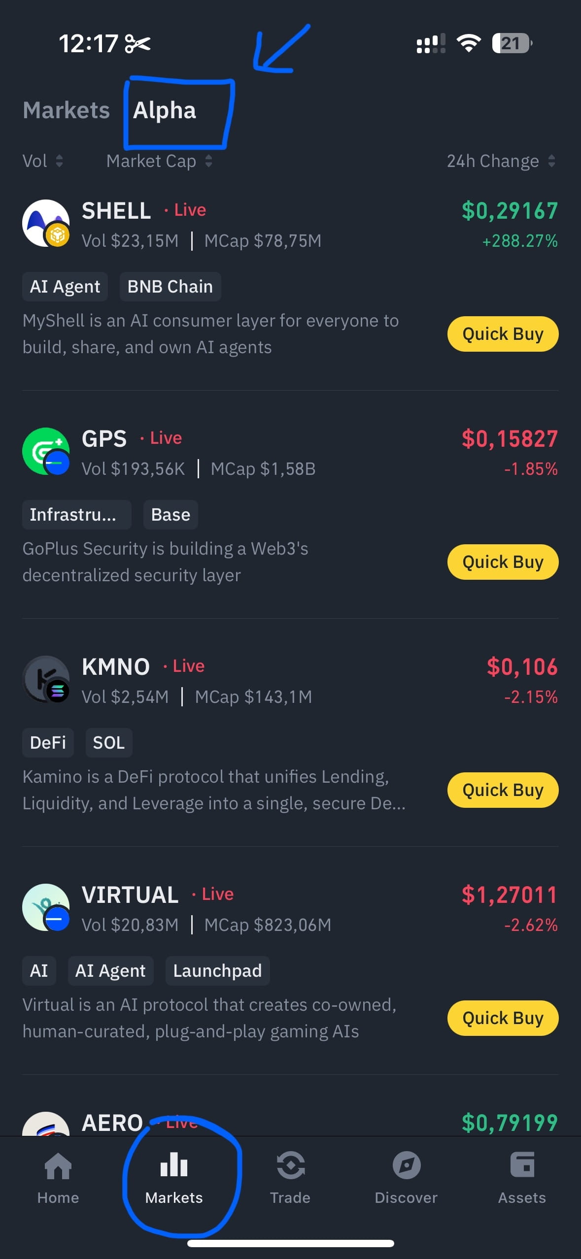 4️⃣ Explore a seção Binance Alpha [Mercado -> Alpha]
