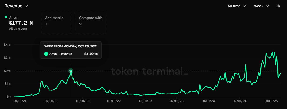 Receita do protocolo Aave Fonte de dados: Tokenterminal