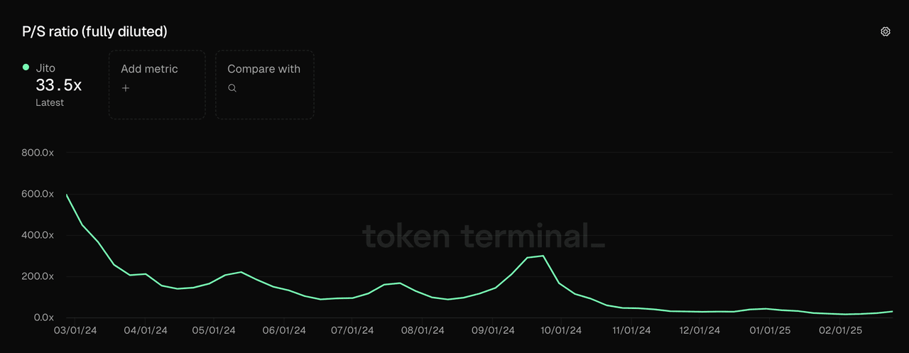 Com o recente aumento na popularidade de Solana, a avaliação PS totalmente diluída da JTO diminuiu rapidamente, atualmente em torno de 33. Essa avaliação ainda não considera a renda MEV iniciada recentemente. Se a renda MEV for considerada, a avaliação totalmente diluída da JTO diminuiria para aproximadamente 22.