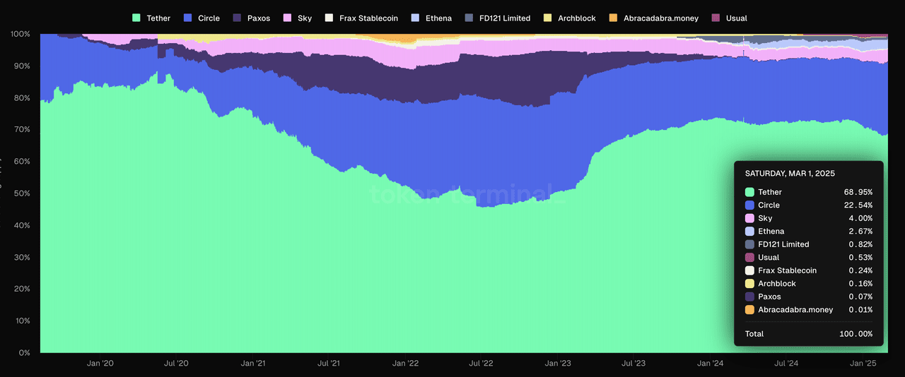 Participação de mercado das dez principais stablecoins Fonte: Tokenterminal