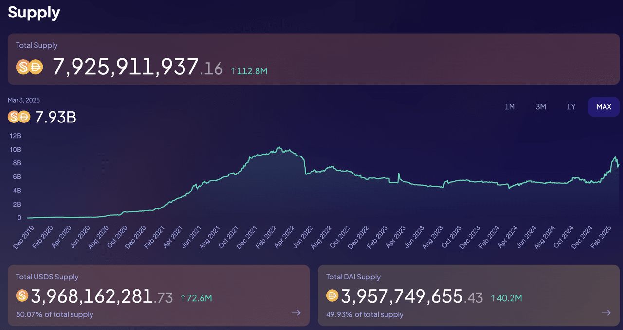 MakerDAO é um dos primeiros protocolos DeFi na blockchain Ethereum, fundado em 2015, o que o torna quase uma década de idade. Com sua vantagem de pioneirismo, sua stablecoin DAI (incluindo sua versão atualizada USDS) tem sido há muito tempo a maior stablecoin descentralizada do mercado.