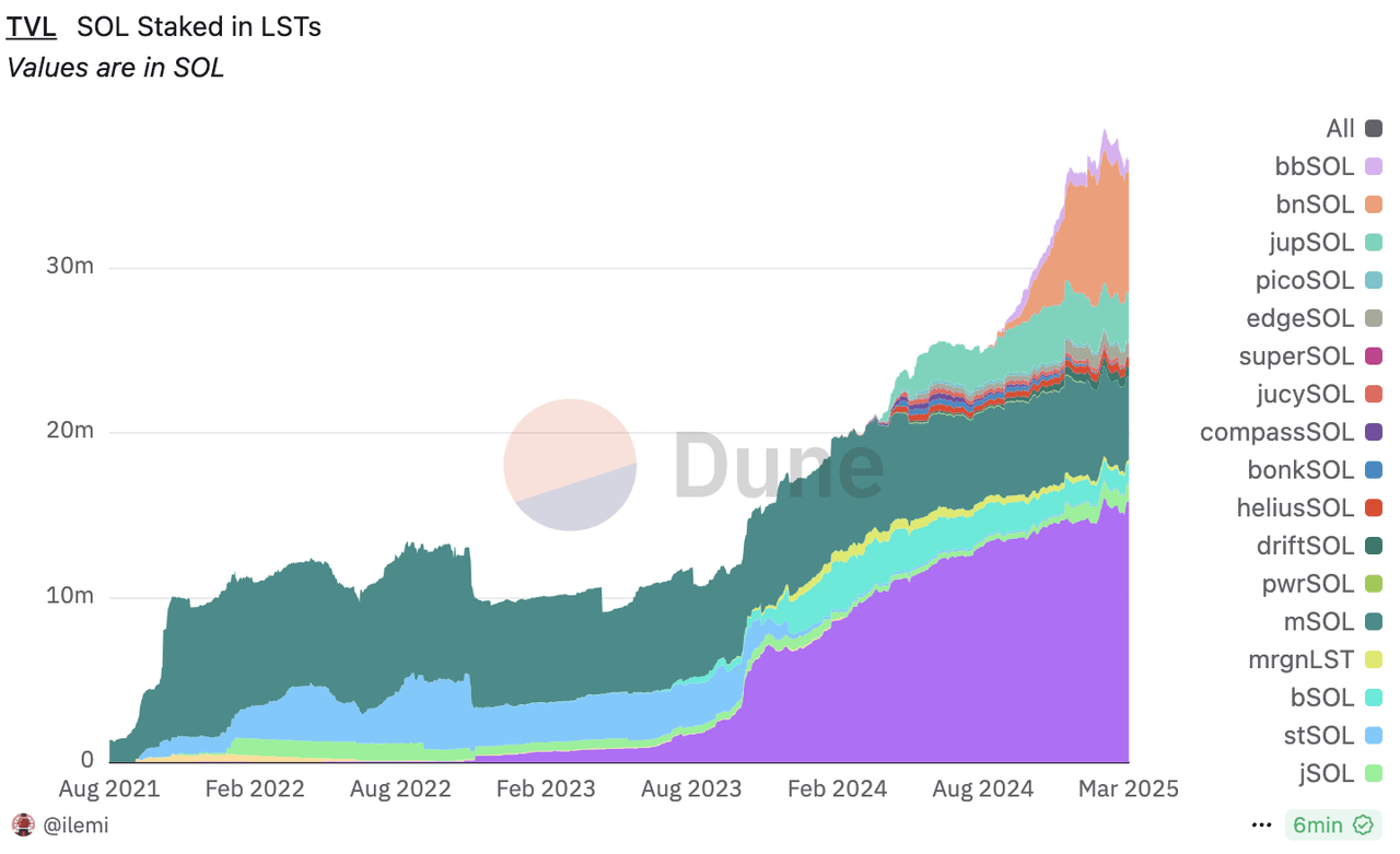 Participação de mercado de staking de Solana Liquid Fonte: Dune