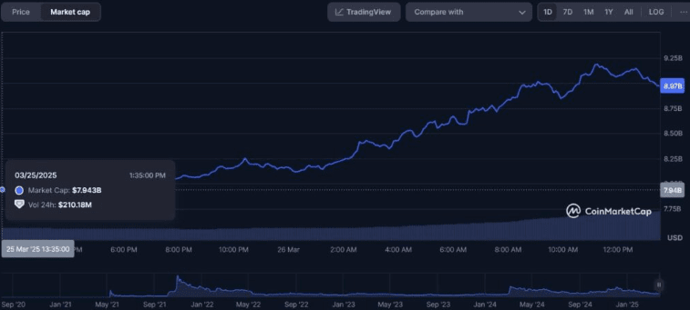 Notavelmente, nas últimas 24 horas, a capitalização de mercado do Shiba Inu aumentou de $7,94 bilhões para $8,97 bilhões em 26 de março. Isso representa um aumento de $1,03 bilhões em um dia.