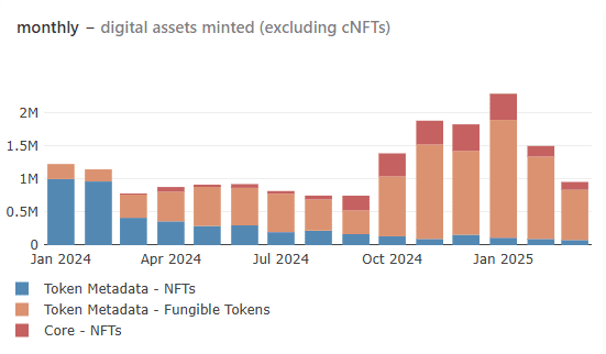 O resfriamento contínuo do Meme do Solana levou a um declínio persistente no volume de cunhagem de ativos, resultando em receita comercial reduzida. Essa tendência de queda, que começou em janeiro, não mostrou sinais de reversão até agora.