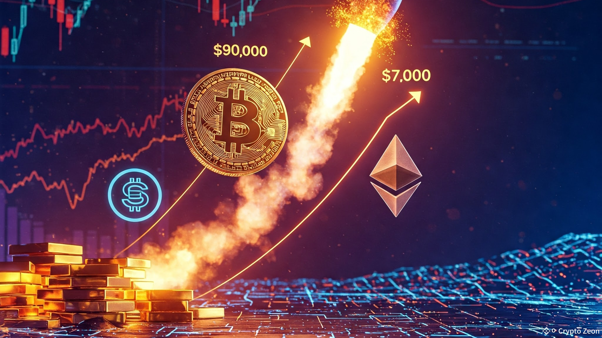Previsões de analistas: O Bitcoin($BTC ) pode em breve atingir $100.000, enquanto o Ethereum pode chegar a $7.000.