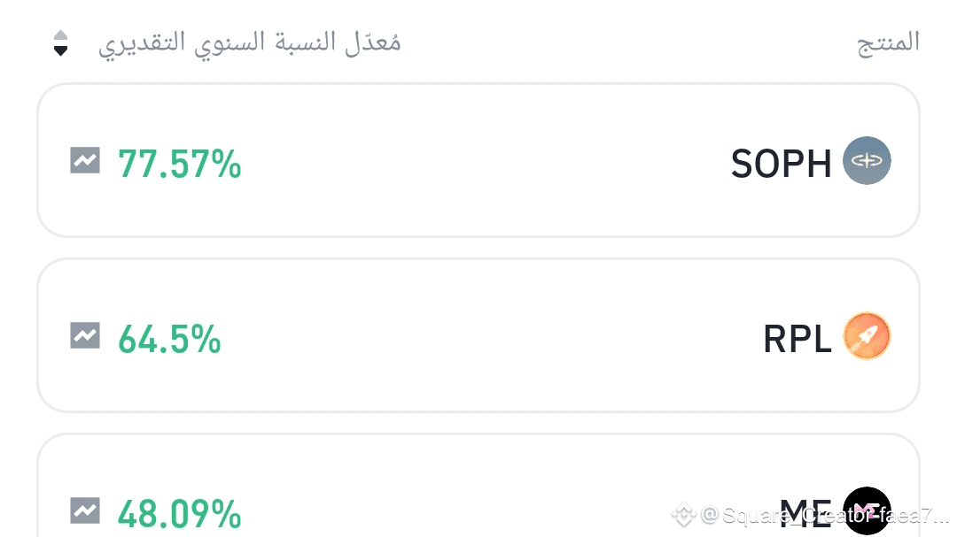 For example, Binance currently offers the possibility of earning annual profits of up to 77.57% on SOPH currency and other RPL currencies at 64.5%, which is considered one of the highest rates in the market within the flexible product category.