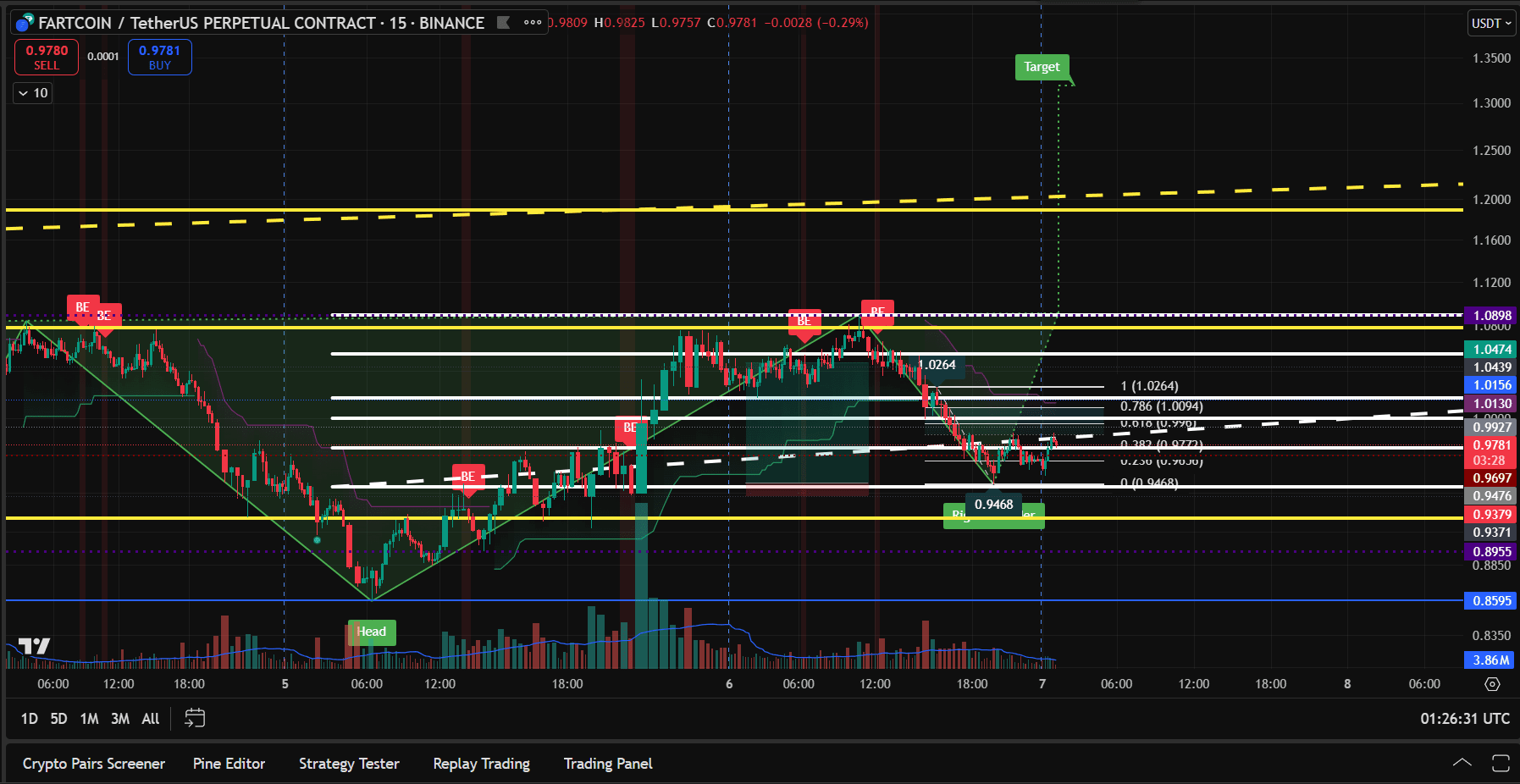 0.786 retraçamento em 1.0094 USDT