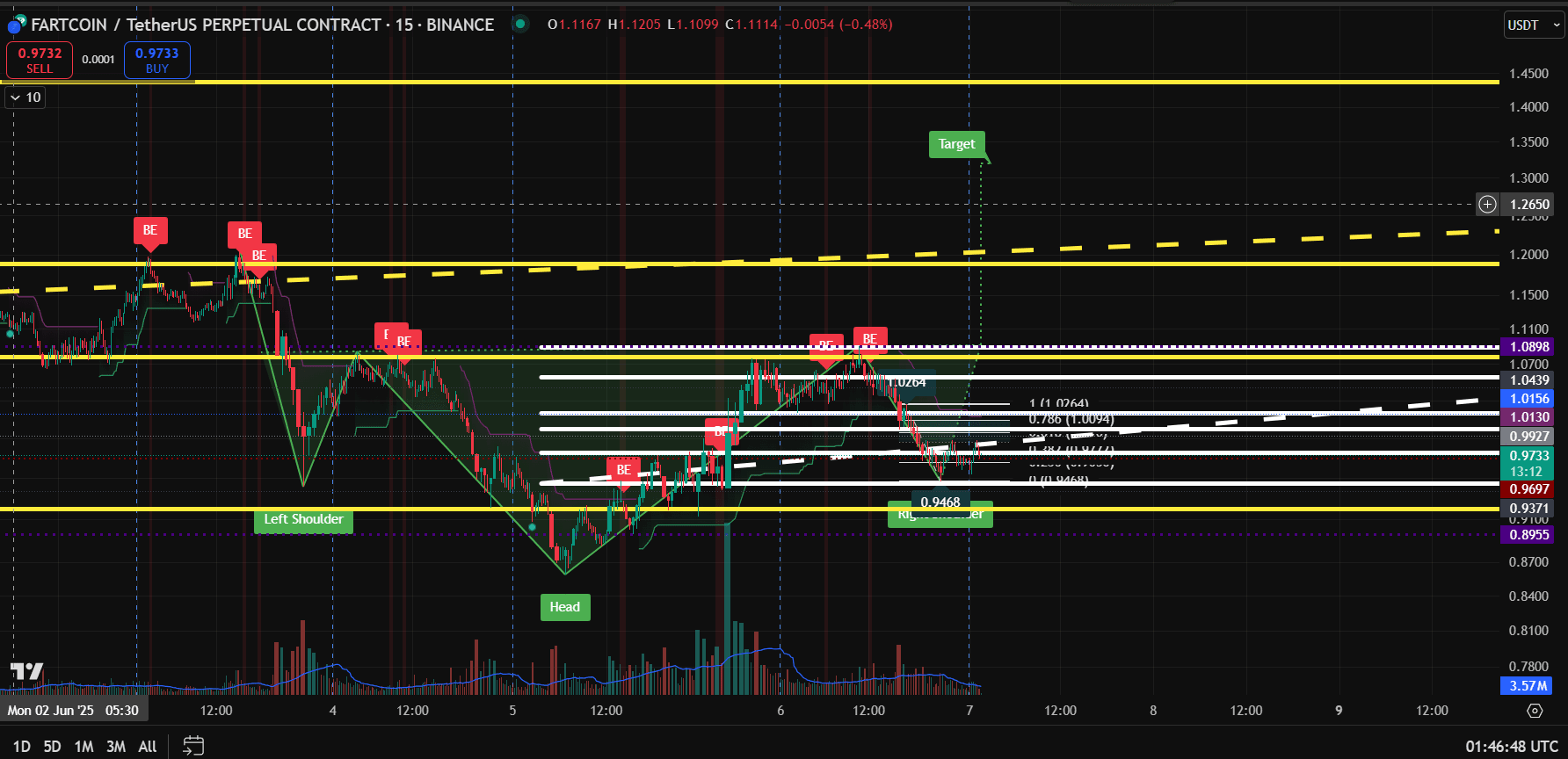 FARTCOIN/USDT está atualmente apresentando uma oportunidade promissora de negociação longa com suporte técnico e dados de volume/liquidez alinhando-se favoravelmente. Os traders devem esperar por sinais de confirmação antes da entrada e empregar uma gestão de risco rigorosa para proteger o capital. Monitorar o fluxo de ordens via Bookmap será crítico para navegar em zonas de resistência e ajustar a negociação dinamicamente.