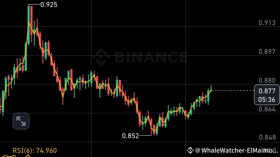 ✅ Notable rebound! After dropping to $0.852, WIF quickly recovered to $0.877 currently, with a daily increase of +7.08% – indicating a strong return for the bulls!
