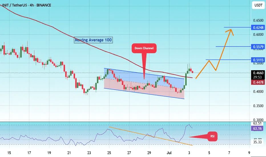 INIT/USDT está mostrando uma emocionante reversão de alta: acabou de romper um canal de baixa (ou cunha descendente) e saltou de um suporte chave, mirando a zona de $0.60–$0.65. Vamos explorar essa configuração juntos em uma análise fácil de seguir!