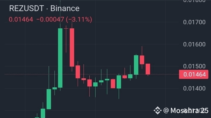 $REZ subiu mais de 56% para atingir $0.01811, mas a alta rapidamente perdeu força à medida que uma forte rejeição formou um padrão de topo explosivo. O preço agora está formando máximas mais baixas no gráfico de 30 minutos, sinalizando enfraquecimento do momento e uma potencial reversão.