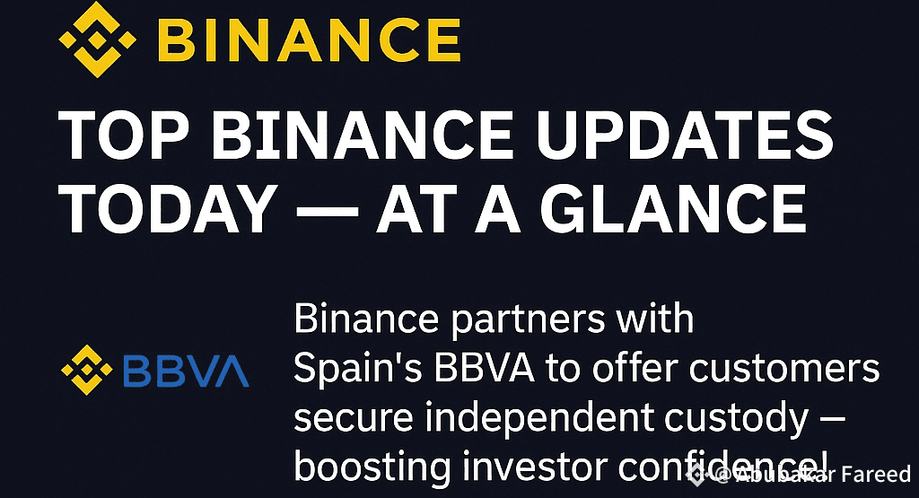 • A Binance faz parceria com o BBVA da Espanha para oferecer aos clientes custódia independente segura — aumentando a confiança dos investidores!
