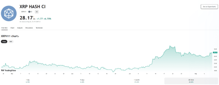 Enquanto isso, o entusiasmo dos investidores pelo produto também está disparando. O primeiro ETF spot de XRP do mundo, emitido pela gestora de ativos de criptomoedas brasileira Hashdex, terminou a última sessão com alta de quase 7% a $5, ganhando mais de 40% desde seu lançamento em abril.