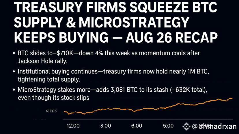 2) A compra institucional continua—empresas de tesouraria agora detêm quase 1M BTC, restringindo a oferta total.